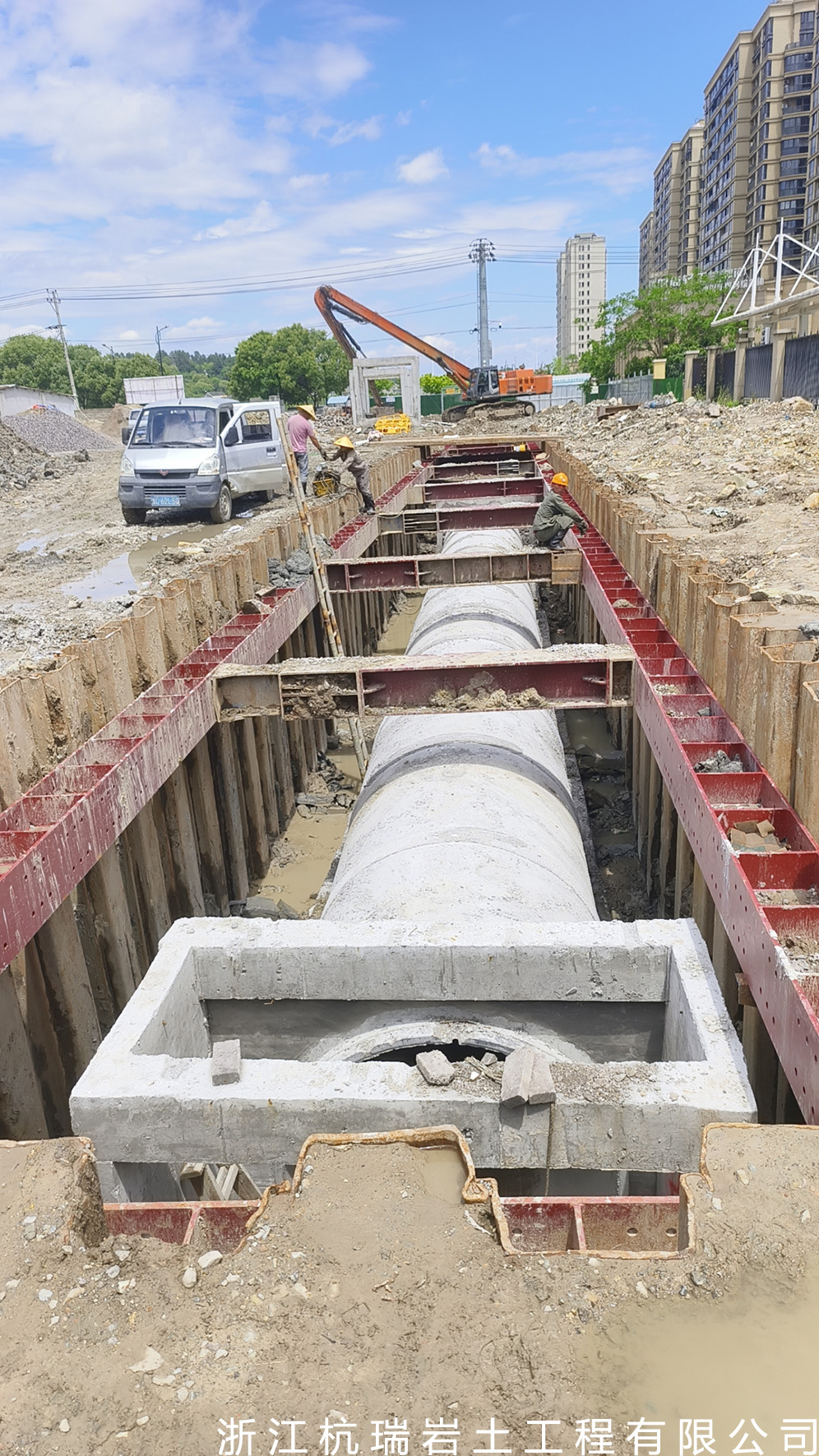 浙江杭瑞巖土工程有限公司, 成立于2016年,本公司是一家從事巖土設(shè)計、巖土監(jiān)測的深基坑圍護(hù)的公司。公司主要承接打拔Pc工法樁,Pc鋼管樁,Pc工法組合樁,板樁,打拔管樁,鋼便橋搭設(shè)以及圓管樁、拉森樁、貝雷架、型鋼、鐵板及路基板的租賃。公司有12米、14米、16米、18米等型號長度圓管樁30000余噸,有9米、12米、15米、18米等拉森鋼板樁10000余噸,450、470打樁機多臺。曾參與溫州地鐵S1線基坑圍護(hù)、甌江口大